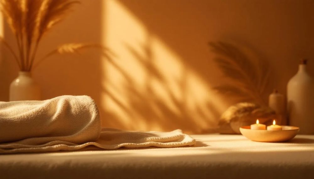 No hands yet. No rush. Just the table beneath you, the faint weight of the blanket, and the odd way your own breath suddenly sounds louder than it did a minute ago.
